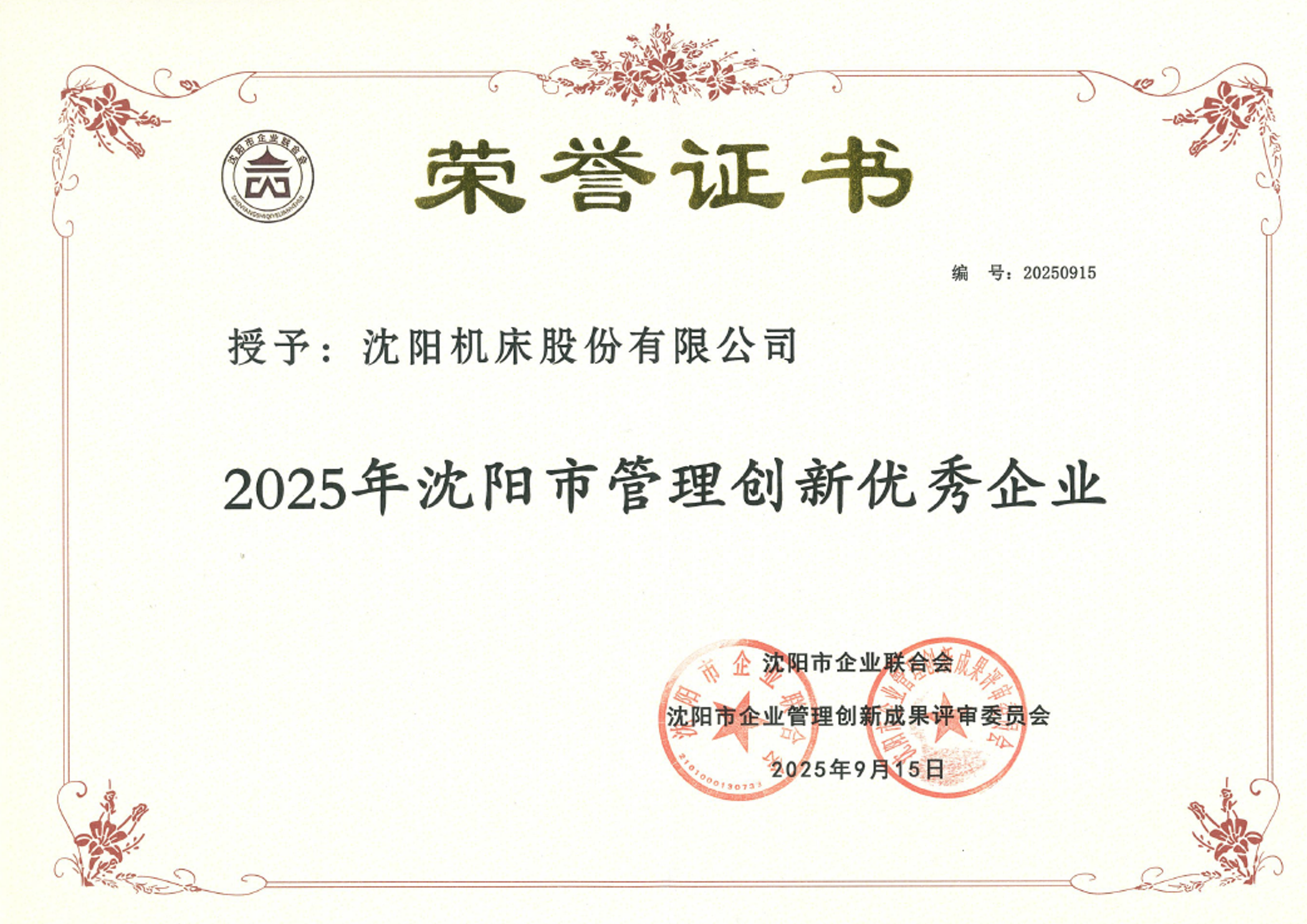 克日,通用手艺555000jc线路检测获评“2025年沈阳市管理立异优异企业”。